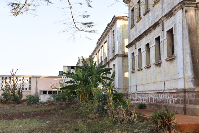 Kurz hinter dem Ort Bobole verlasse ich die Straße dann auf eine Sandpiste in Richtung der Casa Lisa Lodge. Das Hinweisschild an der Straße sieht etwas in die Jahre gekommen aus und ein zweites Schild weist auf ein weiteres Hotel in der Nachbarschaft hin. Die Zufahrten gabeln sich nach etwa halber Strecke, ohne dass von dem einen noch dem anderen Grundstück oder Gebäuden etwas zu sehen wäre und mir fällt schnell auf, dass dort wo ich hin will gar keine auch nur einigermaßen frischen Reifenspuren im Sand auszumachen sind. Den Grund sehe ich einige Minuten später, denn von der Casa Lisa Lodge, zu der auch ein weitläufiges Campingareal gehört, stehen nur mehr verkohlte Ruinen und im Umkreis einige ausgebrannte ansonsten heruntergekommene, schon offenbar lange Zeit nicht mehr benutzte Chalets. An der ungepflegten Rasenfläche des Campingplatzes ist ein Versorgungsgebäude in Holzbauweise mit hohem Strohdach zwar vorhanden, aber alle Tür- oder Fensteröffnungen sind verrammelt.