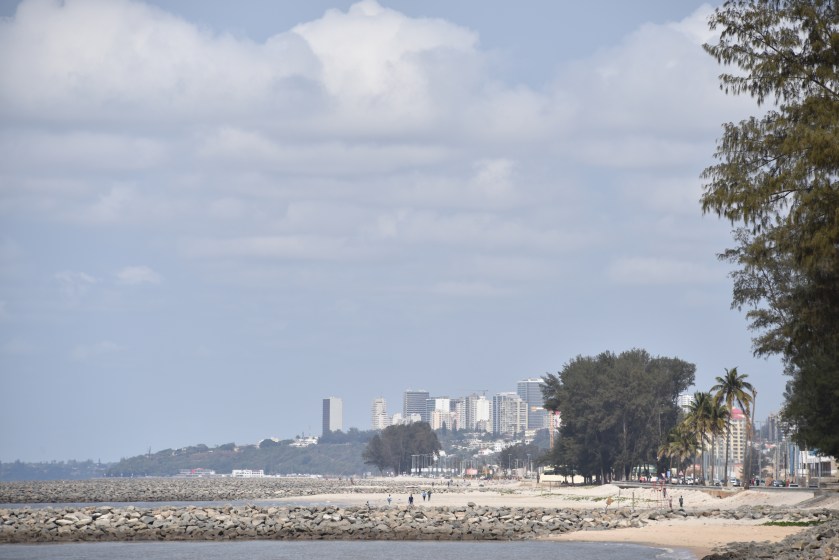 Frühstück gibt es bei Fatima’s Place nicht, aber immerhin etwas Kaffee aus der Thermoskanne. Einen Rest Brot habe ich noch, eine Tomate und Erdnussbutter ebenfalls, damit komme ich auch über die Runden. Heute ist wieder herrlich sonniges Wetter und kurz nach 9:00 Uhr verabschiede ich mich in Richtung Avenida da Marginal, einer Uferpromenade die direkt am Strand des Indischen Ozeans in Richtung Norden führt. Kilometerweit weißer Sandstrand, der Sand teilweise am Straßenrand verweht.